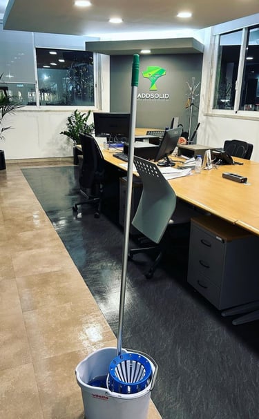 Serviços de limpeza para empresas e escritórios, garantindo ambientes limpos e organizados.